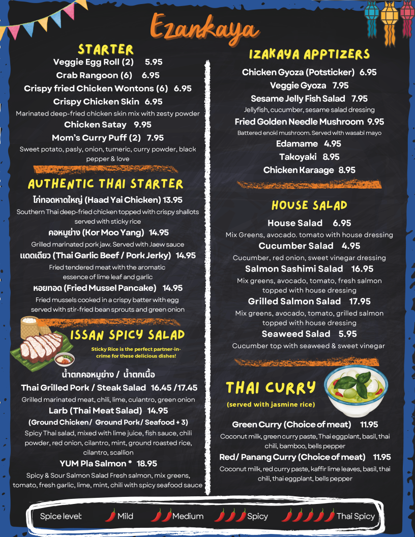 Welcome to Ezankaya, a delightful culinary gem located at 1320 W Devon Ave, Chicago, where the vibrant flavors of Thailand and Japan come together. The menu is an eclectic mix, offering something for everyone, from mouth-watering appetizers to signature dishes.
